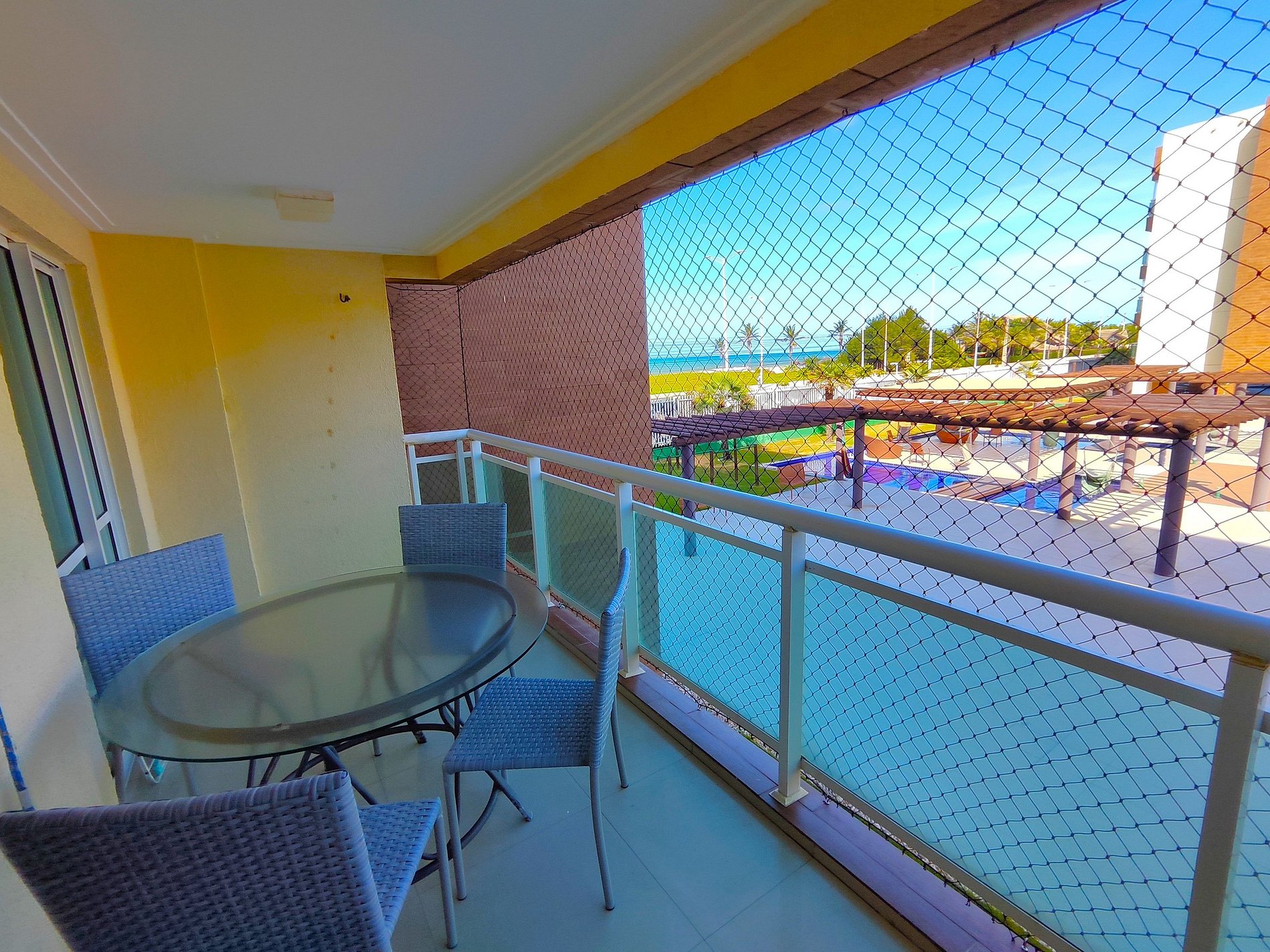 Cozy apartment with 2 bedrooms and 2 bathrooms with sea view, in the best condominium in Praia do Futuro facing the beach with swimming pool, sauna, playroom, playground, barbecue, massage area. Complete apartment with kitchen, air conditioning in the rooms, blender, microwave, stove, refrigerator.