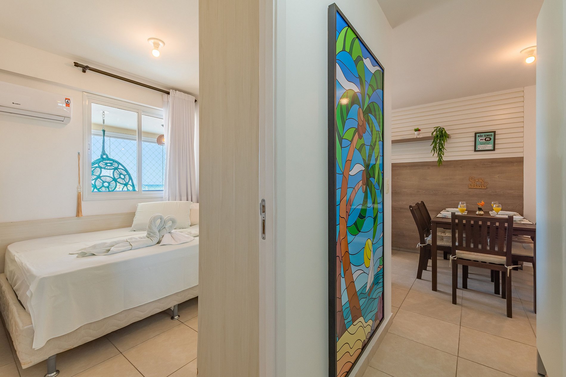 - Confortável sala de jantar e estar com TV, WiFi de alta velocidade + Globoplay.