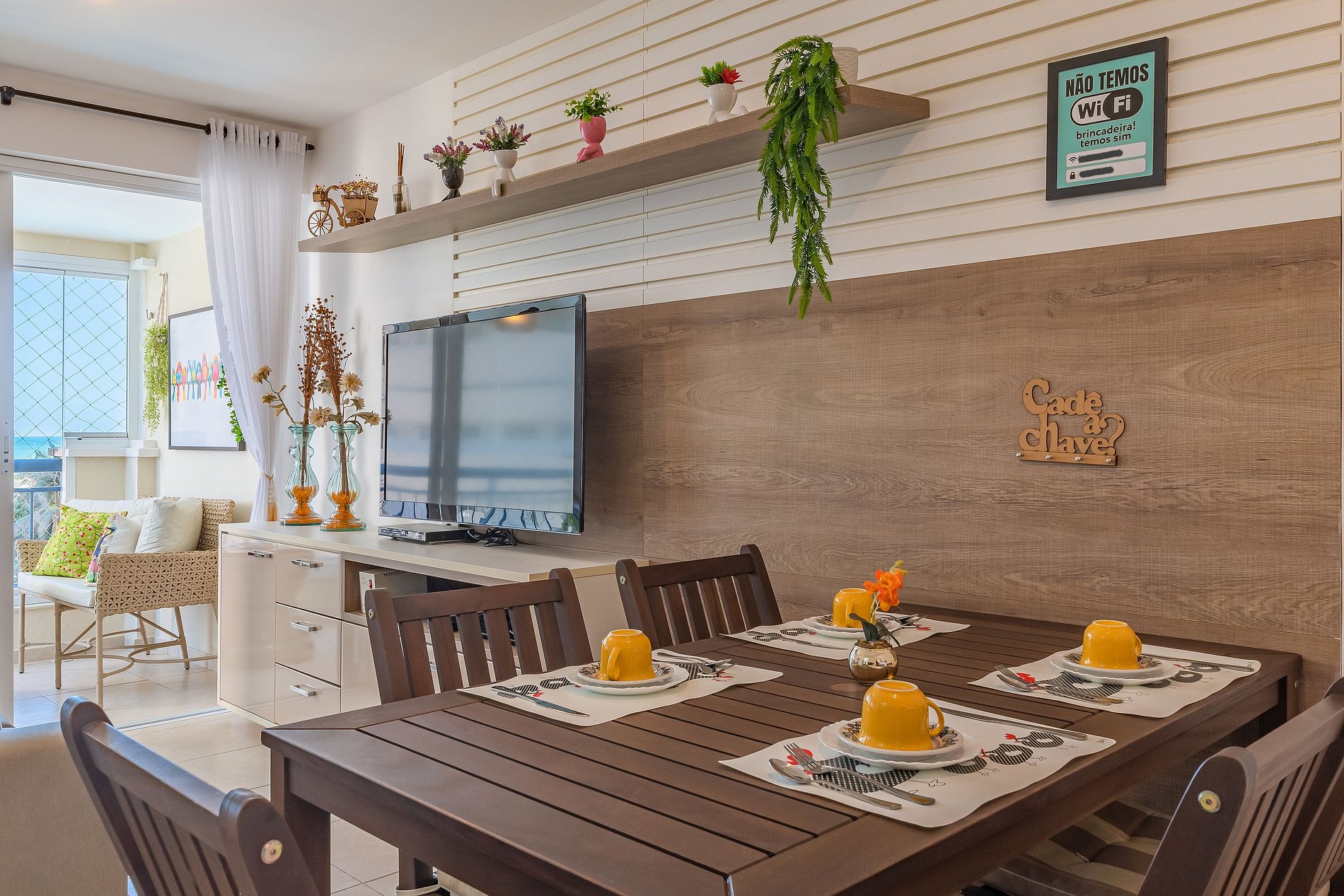 - Confortável sala de jantar e estar com TV, WiFi de alta velocidade + Globoplay.